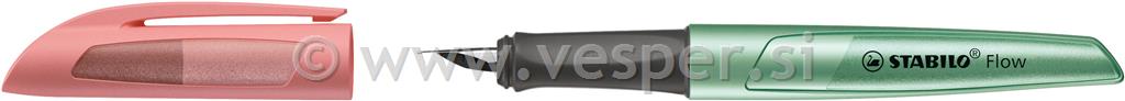 Nalivno pero STABILO Flow navdušuje s svojim modernim, preprostim dizajnom in lično pisavo. Zahvaljujoč ergonomskemu območju oprijema varno sedi v roki med pisanjem. Visokokakovostno M pero z iridijevo konico drsi po papirju, ne pušča madežev ali prask. Pokrovček z vzmetjo tudi preprečuje iztekanje črnila. STABILO Flow uporablja standardne vložke/ bombice.