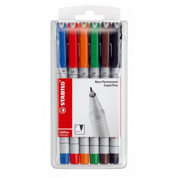 Komplet šestih vodotopnih flomastrov STABILO OHPen universal debeline S (0,4 mm)